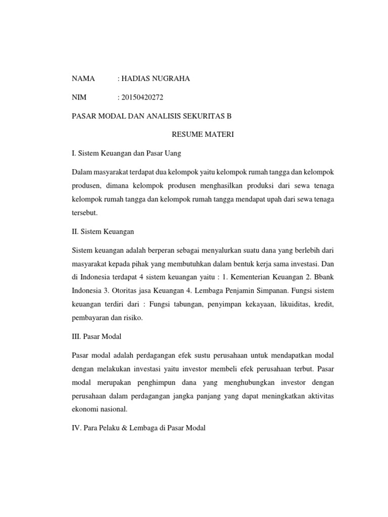 Materi Pasar Uang Dan Pasar Modal Pdf. Mari langsung saja yah sobat kita membaca sejarah perkembangan pasar modal di indonesia terlebih dahulu dan bahasan tentang pasar modal lebih lanjut secara lengkap. Memberikan kesempatan masyarakat berpartisipasi dalam pembangunan dengan membeli sertifikat bank indonesia (sbi) dan surat berharga pasar uang (sbpu); Pasar modal berbeda dengan pasar uang (money market). Membahas pasar modal tentu kita harus memahami sejarahnya terlebih dahulu guna memberikan kita pemahaman lebih jauh tentang seluk beluk kenapa pasar modal bisa ada. Instrumen pasar uang antara lain: Pasar uang dan pasar modal. •pasar modal dan pasar uang •asuransi •dana pensiun •venture capital •lembaga pembiayaan •pegadaian •lembaga keuangan sosial syariah: Pasar uang berkaitan dengan instrumen keuangan jangka pendek (jatuh tempo kurang dari 1 tahun) dan merupakan pasar yang abstrak. Rtn (pemerintah) mendapatkan penghasilan dari pajak danmenggunakannya untuk membeli barang dan jasa dari pasar faktor produksi, pasar barang, dan rtp. Pasar uang amanitanovi@uny.ac.id bank dan lembaga keuangan lain 184 2. Pengertian pasar uang, fungsi, dan 8 contoh instrumennya. Sistem dan lembaga keuangan mata kuliah manajemen keuangan bank syariah jakarta, 2018. Scribd adalah situs bacaan dan penerbitan sosial terbesar di dunia. Selain pasar modal, dunia investasi punya satu lagi sarana jual beli instrumen, yaitu pasar uang. Studi kasus serta membaca text book dan materi lainnya, mahasiswa diharapkan.